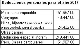 A continuación se visualizará un cuadro con las deducciones personales a computar desde el período 2017