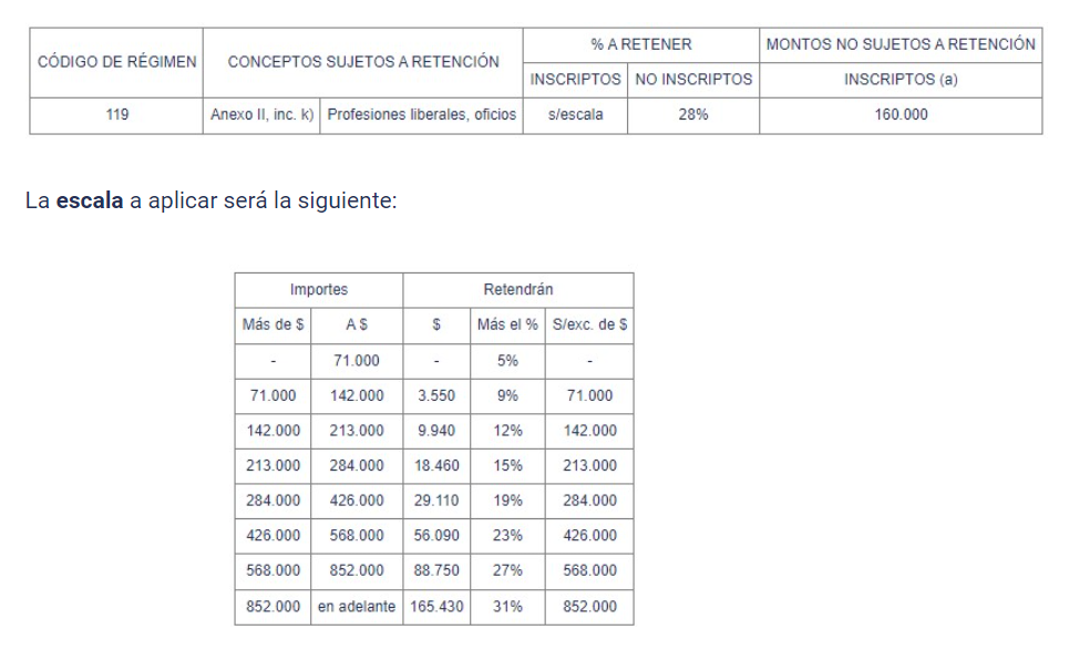 Este nuevo régimen de retención tiene un monto no sujeto a retención de $160.000.- y la alícuota será progresiva de acuerdo a una escala específica.